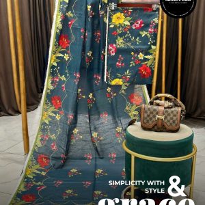 - This is a three-piece unstitched lawn suit, comprising a shirt, dupatta, and trouser, designed for casual to semi-formal wear.